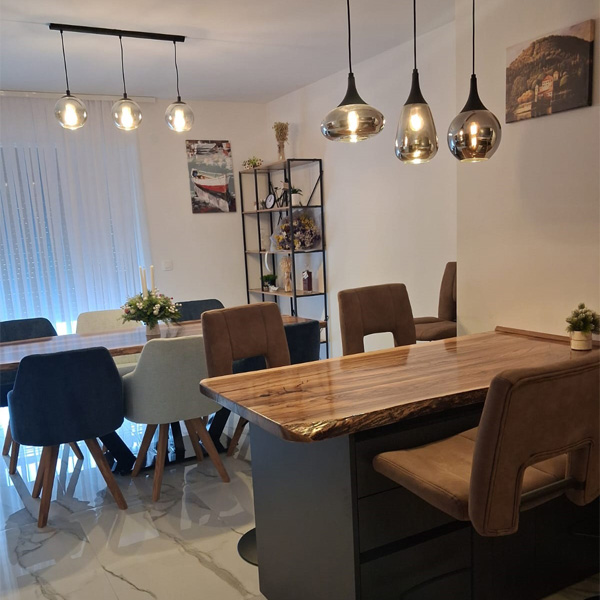 Toplo, privlačno mjesto za dijeljenje obroka i razgovora. Smješteno između kuhinje i dnevnog boravka.